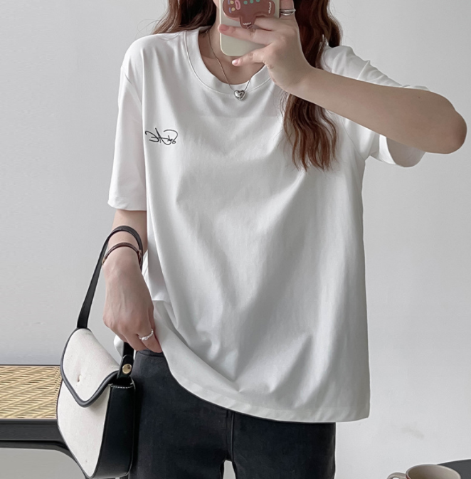 Chest embroidery letter t-shirt women’s all-match inner bottoming top